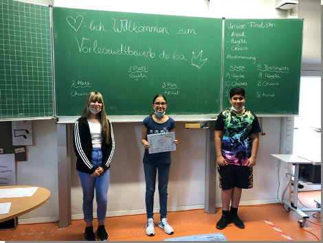 Leider musste unser Schul-Vorlesewettbewerb dieses Jahr aufgrund von Corona ausfallen, deshalb entschieden wir, die Klasse 6a, in den jeweils letzten beiden Schulwochen unseren eigenen, klasseninternen Vorlesewettbewerb durchzuführen.