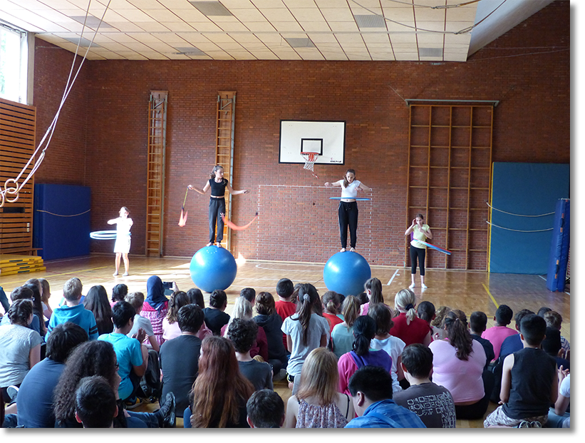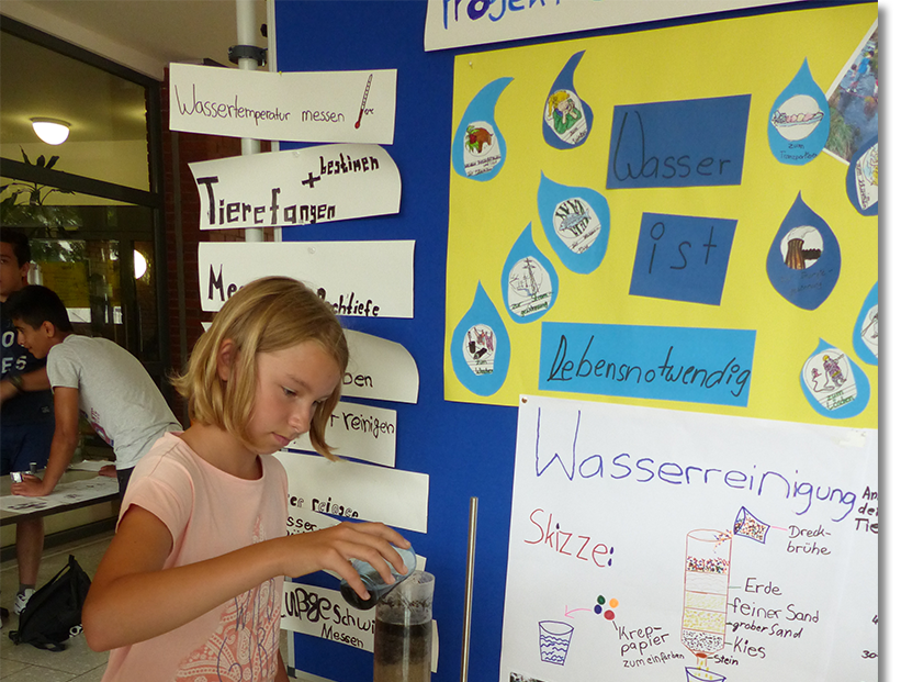Schnell merkte man vielen Projekten an, dass es sich so ganz befreit von Notendruck und Leistungsgedanken für Schüler und Lehrer ganz entspannt arbeitet. Die Ergebnisse der Projekttage konnten sich sehen lassen, was sicher auch der Tatsache geschuldet war, dass jeder Schüler sein Thema nach Interesse festlegen konnte. Am Letzten Montag des Schuljahres fand im Rahmen einer großen Schulversammlung die Präsentation der Projekte statt, bei der an Ständen die Ergebnisse präsentiert wurden, man sich die erstellten Filme ansehen konnte oder die Gruppen vorführten, was sie in den letzten Tagen erarbeitet hatten.